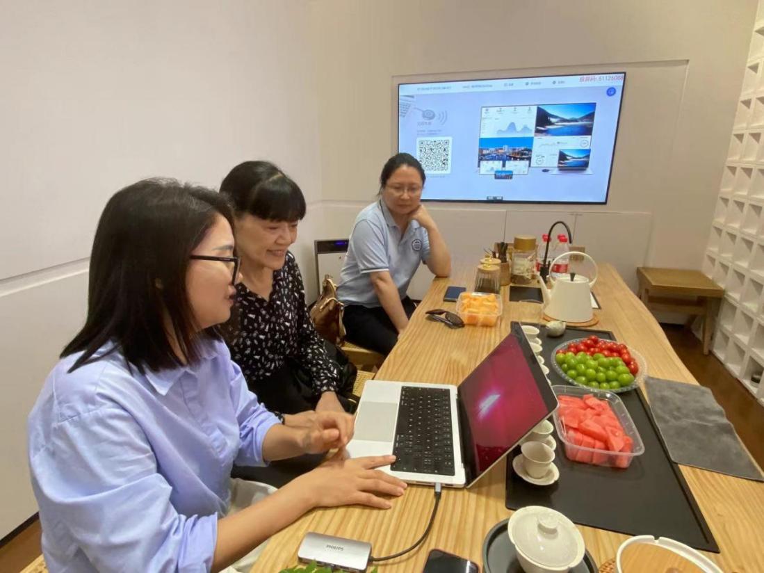 图2 张丽女士向尚华经理和安陆禄老师介绍企业的创办理念