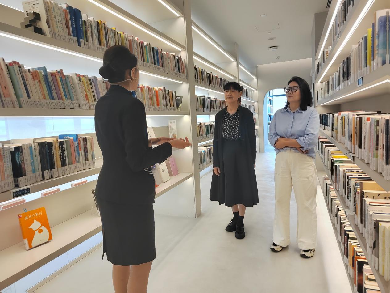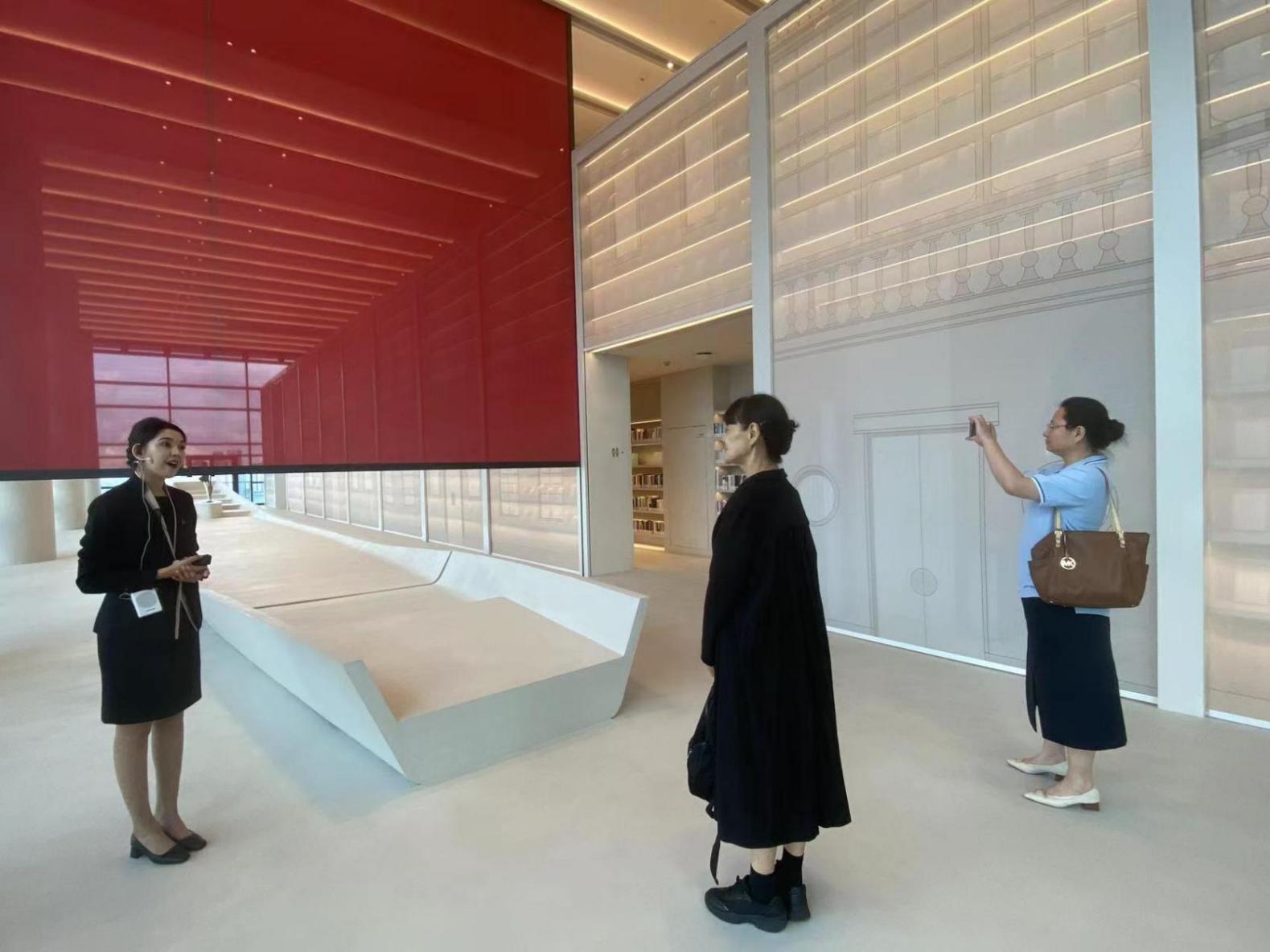 图5 唯品会讲解员向尚华经理介绍唯品会的图书馆设计理念