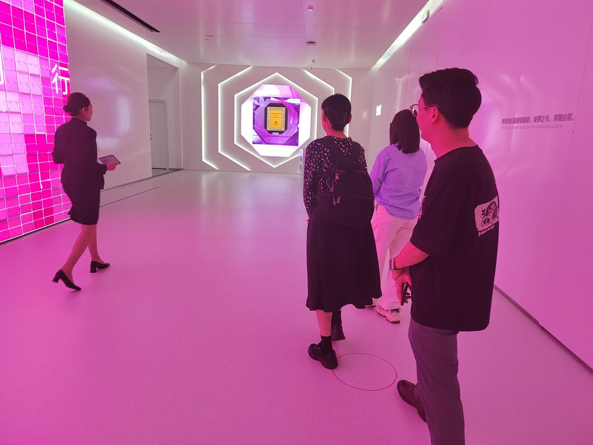 在结束总部的考察后,在张丽女士的引领下,公司老师们进一步走访了唯品会总部,参观了由特立公司设计建设的唯品会企业展示中心。该展示中心作为广州网络科技及高新企业对外展示的重要平台,采用了数字媒体、人机交互及3D裸眼技术等尖端科技,不仅展示了当下数字时代的企业品牌宣传新方式,更前瞻性地描绘了未来生活的全新图景。老师们还深入企业内部,体验了员工活动区、生活区、运动区及图书馆等区域,感受了唯品会独特的企业文化与设计理念。