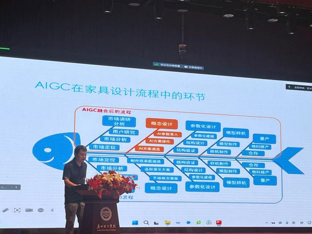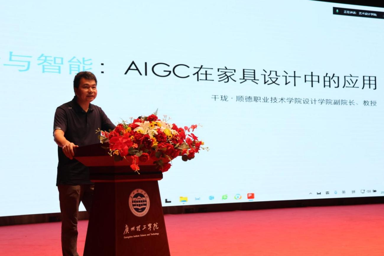 顺德职业技术公司设计公司副经理干珑以《创新与智能:AIGC在家具设计中的应用》为主题,与公司师生分享了AI学习与应用。干珑副经理从人工智能技术在家具设计中的应用场景入手,结合生动案例讲解,展示了如何通过AIGC(人工智能生成内容)实现家具设计方案的快速生成、风格迁移、尺寸调整等功能,极大地提高了设计效率和创意可能性。